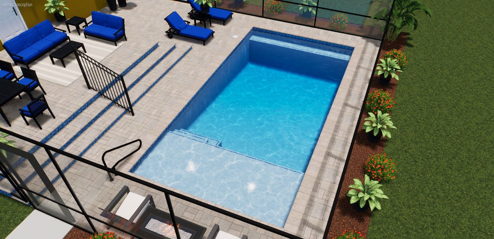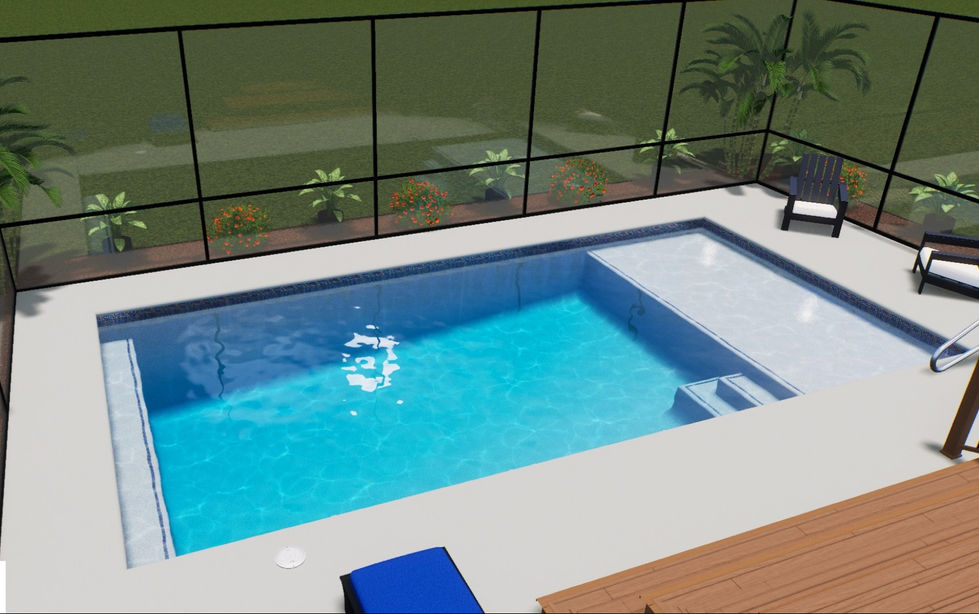 Rectangular Pool, Enlarged Sun Shelf, Raised Wood Deck, Pavers and Raise Options.