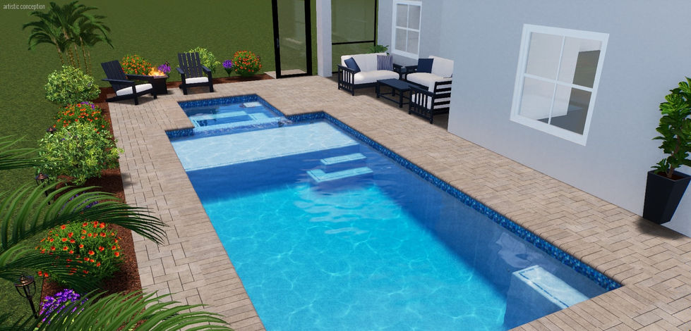 Rectangular Pool, Flush Spa, Umbrella Hole in Sun Shelf, Pavers